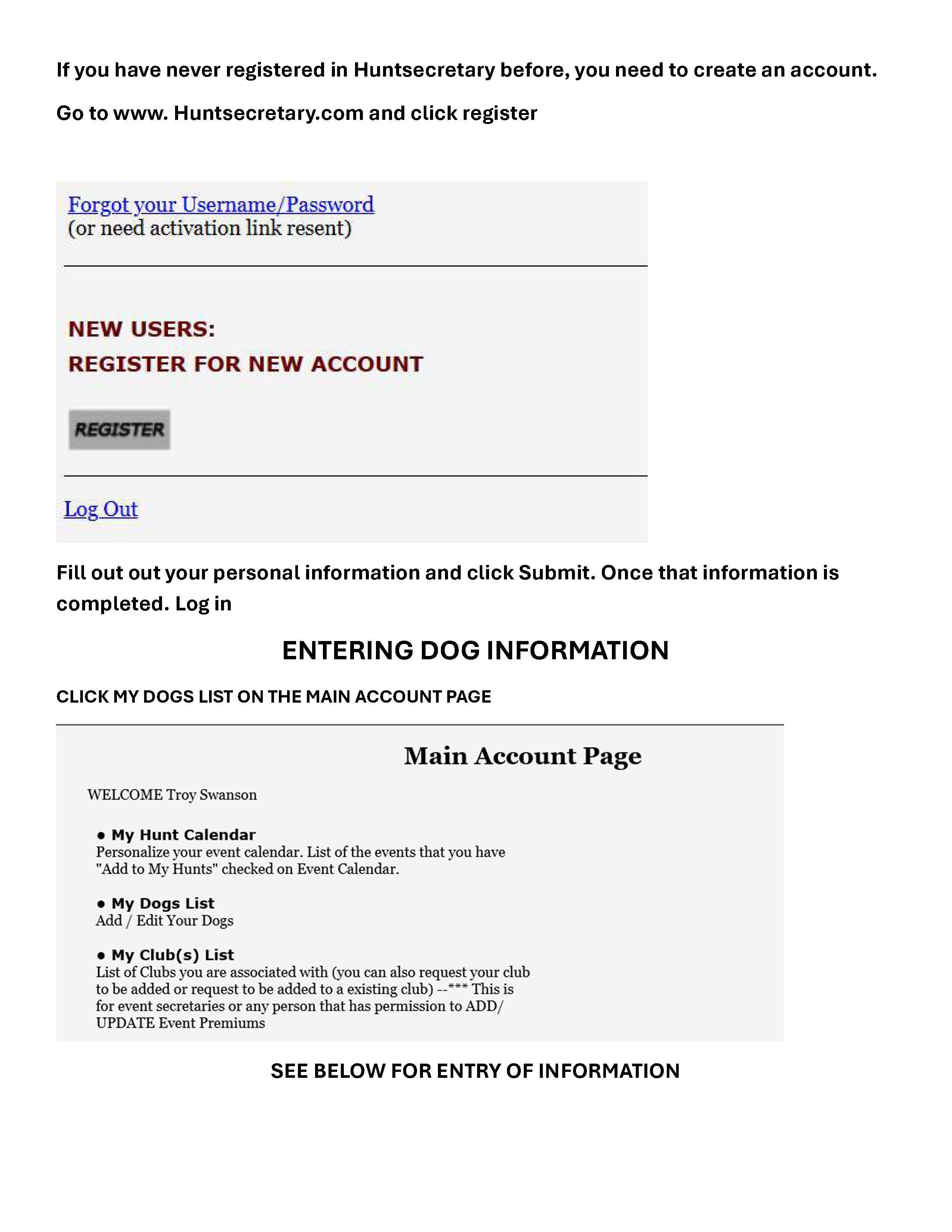 APLA uses your and your dog's information from the huntsecretary.com website for the following purposes: